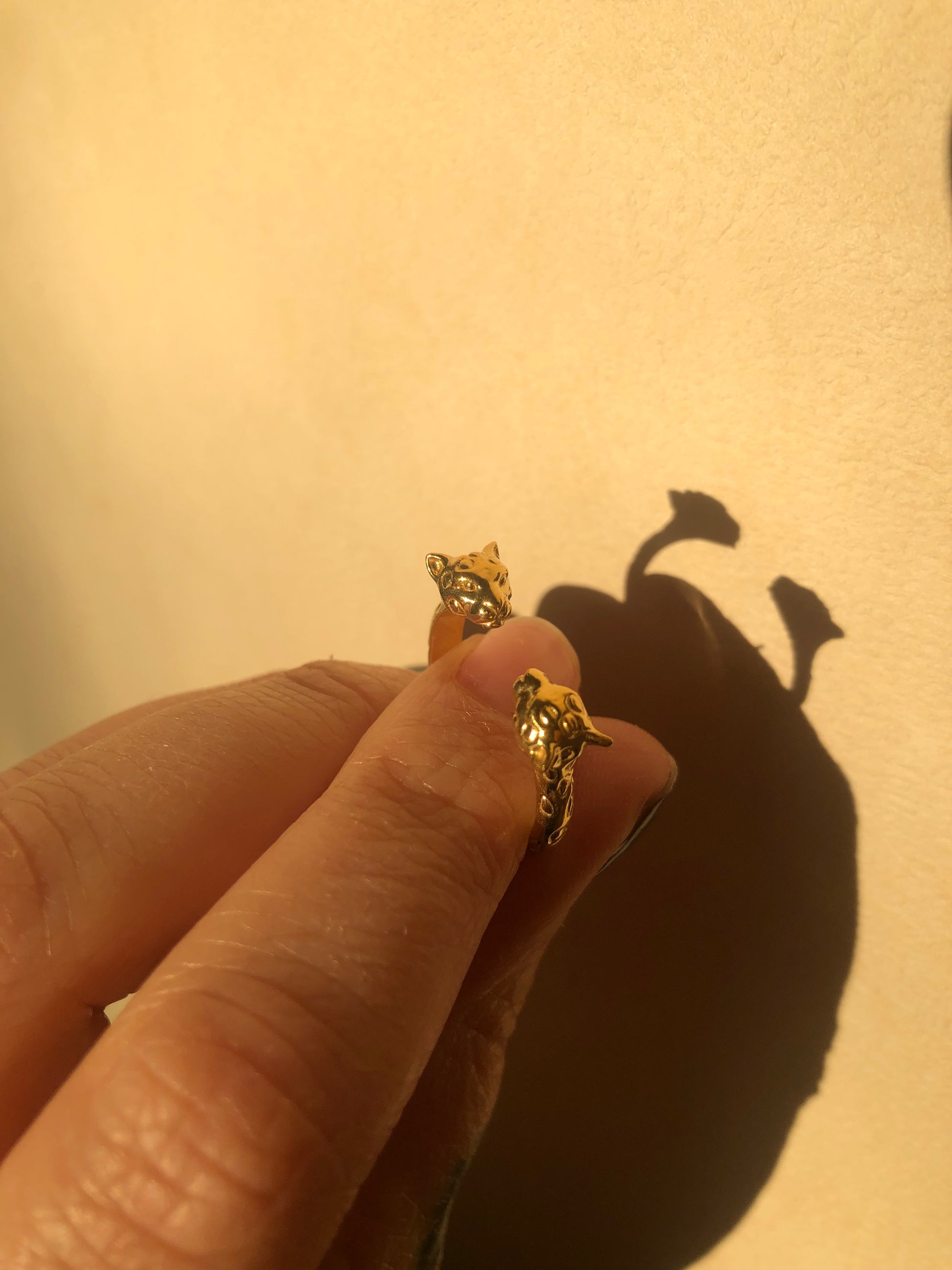 Unleash your inner wild side with this stunning gold leopard ring. Crafted from sterling silver, this ring features a beautifully detailed double leopard design that is sure to turn heads. The gold finish adds a touch of elegance and sophistication, making it the perfect statement piece for any occasion. Whether you're dressing up for a night out or adding a touch of glamour to your everyday look, this ring is sure to impress. So why wait? Add this beautiful gold leopard ring to your collection today and let your fierce style shine!