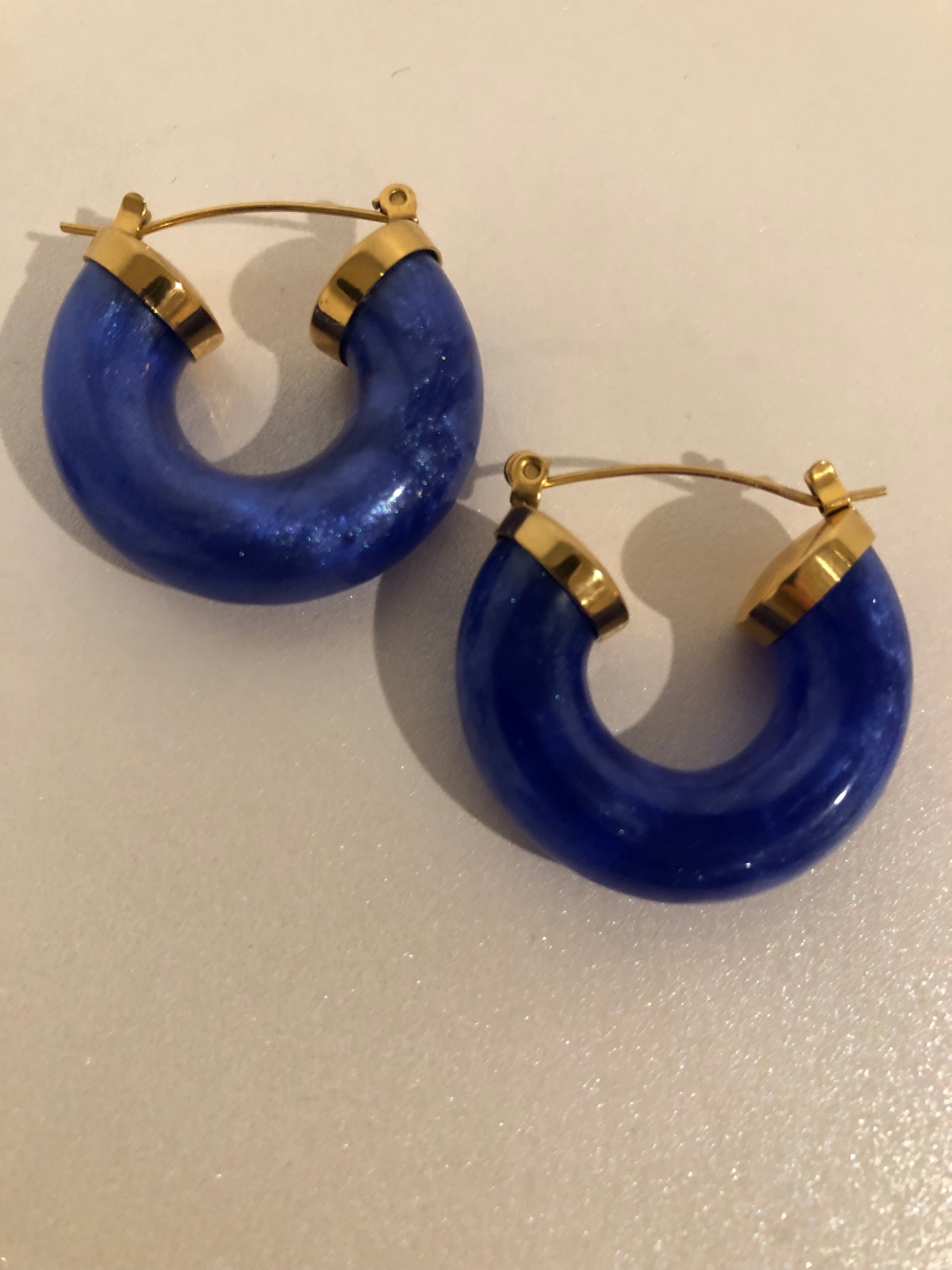 The Eve hoops are a stylish and contemporary choice for jewellery enthusiasts. These hoops combine the durability and sleekness of stainless steel with the vibrant, eye-catching appeal of green acrylic. The green adds a pop of colour and a modern aesthetic to the classic hoop design. With their lightweight feel and hypoallergenic properties, these hoops are comfortable to wear for extended periods of time.